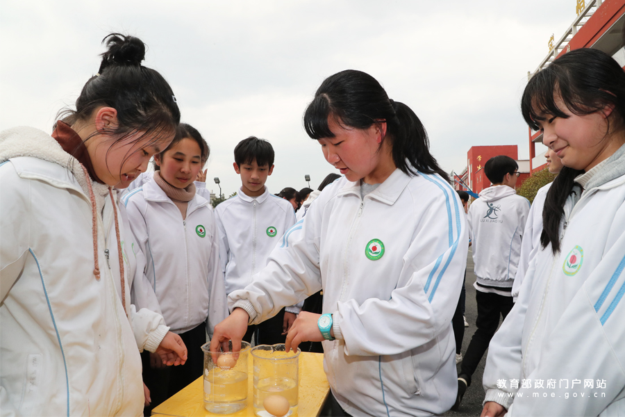 1/0學生在操場上進行物理實驗,學習懸浮的雞蛋、杯吞氣球、土電話、搖繩發(fā)電等小實驗的原理知識。上埠鎮(zhèn)中學堅持以科技創(chuàng)新教育為抓手走素質(zhì)教育發(fā)展之路,讓科技創(chuàng)新走進課堂,走進學生,鼓勵學生大膽思維、獨立思考,將科技創(chuàng)新與學科教育有機融合,讓課堂滲透著創(chuàng)新理念。同時,注意根據(jù)不同年級學生的認識特點設(shè)置不同的創(chuàng)新課程內(nèi)容,將創(chuàng)新與生活有機結(jié)合,開設(shè)創(chuàng)新課程。為深入貫徹落實全國教育大會精神,以奮進姿態(tài)迎接祖國70周年華誕,由教育部新聞辦組織的“落實全教會 奮進迎華誕”1+1系列發(fā)布采訪活動走進江西,就2018年全國義務教育均衡發(fā)展督導評估情況走訪了萍鄉(xiāng)市蘆溪縣上埠鎮(zhèn)中學。(張勁松/攝 王唯 姚振/文)