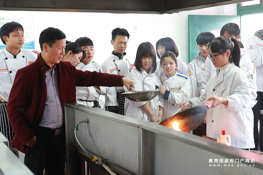 1/04月11日,徽州學(xué)校實(shí)訓(xùn)樓內(nèi),學(xué)生在交流廚藝。安徽省徽州學(xué)校依托“中國(guó)徽菜之鄉(xiāng)”、“中國(guó)廚師之鄉(xiāng)”地域品牌優(yōu)勢(shì),將專業(yè)建設(shè)與產(chǎn)業(yè)發(fā)展有機(jī)結(jié)合,致力培養(yǎng)徽菜傳人,學(xué)生在各級(jí)技能大賽中屢獲大獎(jiǎng),畢業(yè)生就業(yè)率達(dá)到100%,就業(yè)對(duì)口率90%,為傳承徽菜文化做出積極貢獻(xiàn)。(張學(xué)軍/攝)