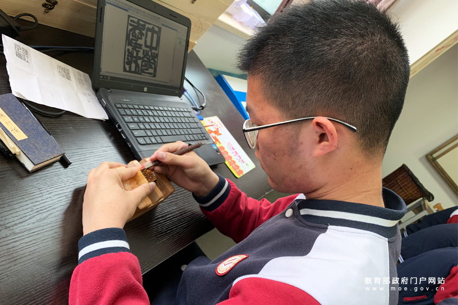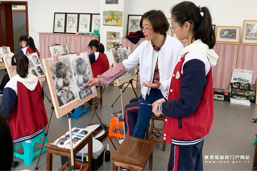 1/0勵(lì)志考入中國美術(shù)學(xué)院的高一年級(jí)學(xué)生田翊宏正在用國畫顏料和墨汁繪制國畫,并在畫中貼以金箔,以表現(xiàn)肌理效果。據(jù)田翊宏同學(xué)介紹,他會(huì)在繪畫中加入自己的所見,比如把參觀北大勺園建筑時(shí)看到的彩繪融入自己的畫作中。為深入貫徹落實(shí)全國教育大會(huì)精神,以奮進(jìn)姿態(tài)迎接祖國70周年華誕,由教育部新聞辦組織的“落實(shí)全教會(huì) 奮進(jìn)迎華誕”1+1系列發(fā)布采訪活動(dòng)走進(jìn)江蘇,就學(xué)校美育改革發(fā)展及全國第六屆中小學(xué)生藝術(shù)展演活動(dòng)有關(guān)情況走進(jìn)江蘇省揚(yáng)中高級(jí)中學(xué)。(謝沂楠/攝 俞曼悅/文)