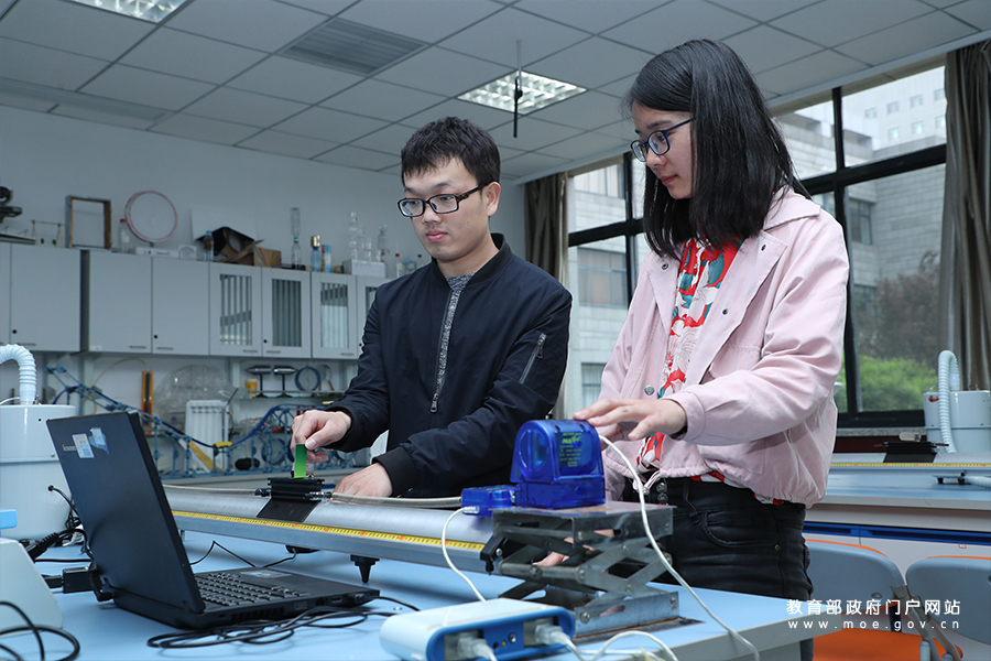1/0在化學(xué)數(shù)字化實驗課堂上,靳老師正在指導(dǎo)學(xué)生通過分析數(shù)據(jù),觀測實驗對象的細(xì)微變化,以此培養(yǎng)學(xué)生的定量思維能力。該團(tuán)隊的“基于手持技術(shù)探究碳酸氫鈉溶液作為二氧化碳緩沖液的性質(zhì)與原理”實驗被評為視頻示范展示作品,并作為教學(xué)資源進(jìn)行廣泛應(yīng)用。學(xué)校在卓越教師培養(yǎng)中,始終秉承“育人為本、德育為先”的理念,注重能力與素養(yǎng)相結(jié)合,大力開展師德養(yǎng)成教育。為深入貫徹落實全國教育大會精神,以奮進(jìn)姿態(tài)迎接祖國70周年華誕,由教育部新聞辦組織的“落實全教會 奮進(jìn)迎華誕”1+1系列發(fā)布采訪活動走進(jìn)天津,就介紹“六卓越一拔尖”計劃2.0有關(guān)情況走進(jìn)天津師范大學(xué)。(張勁松/攝 謝沂楠 曹建 姚振/文)