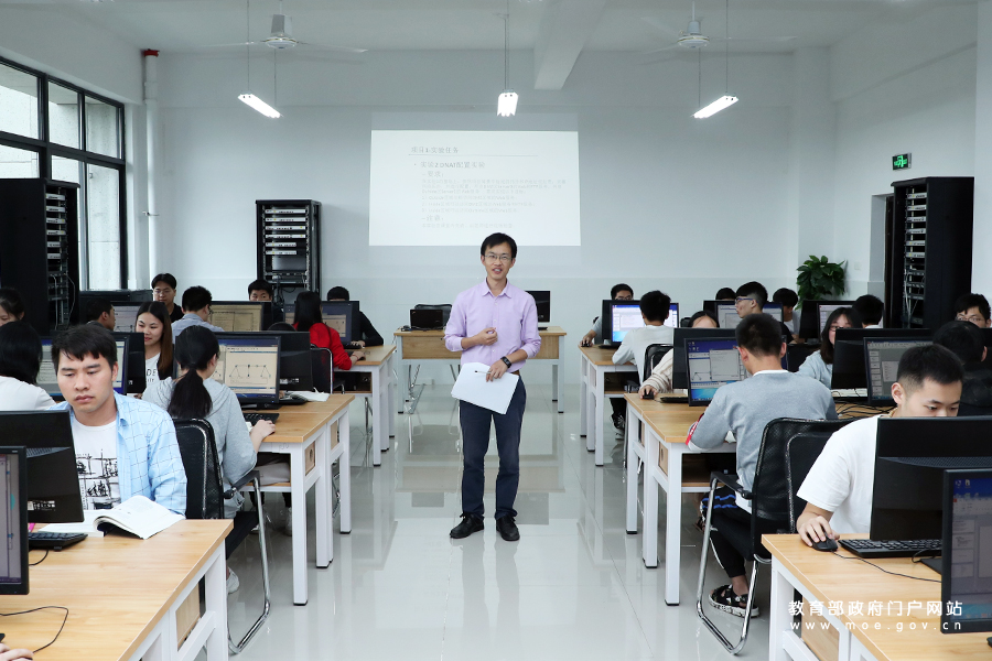 在重慶電子工程職業(yè)學(xué)院信息安全設(shè)備應(yīng)用與測(cè)試中心,胡兵老師正在為人工智能與大數(shù)據(jù)學(xué)院2017級(jí)信息安全與管理專業(yè)學(xué)生講解“信息安全產(chǎn)品配置與應(yīng)用”。為深入貫徹落實(shí)全國(guó)教育大會(huì)精神,以?shī)^進(jìn)姿態(tài)迎接祖國(guó)70周年華誕,由教育部新聞辦組織的“落實(shí)全教會(huì) 奮進(jìn)迎華誕”1+1系列發(fā)布采訪活動(dòng)走進(jìn)重慶,就近期貫徹落實(shí)《國(guó)家職業(yè)教育改革實(shí)施方案》重點(diǎn)任務(wù)進(jìn)展情況走進(jìn)重慶電子工程職業(yè)學(xué)院進(jìn)行采訪。(張勁松/攝 忠建豐 謝沂楠/文)