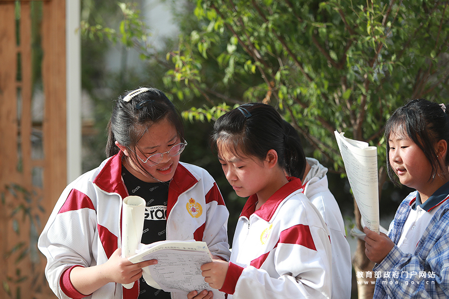 課后閱讀時間,西朱中學校園內教師隨時解答學生提出的問題。(李智梅 張學軍/攝)