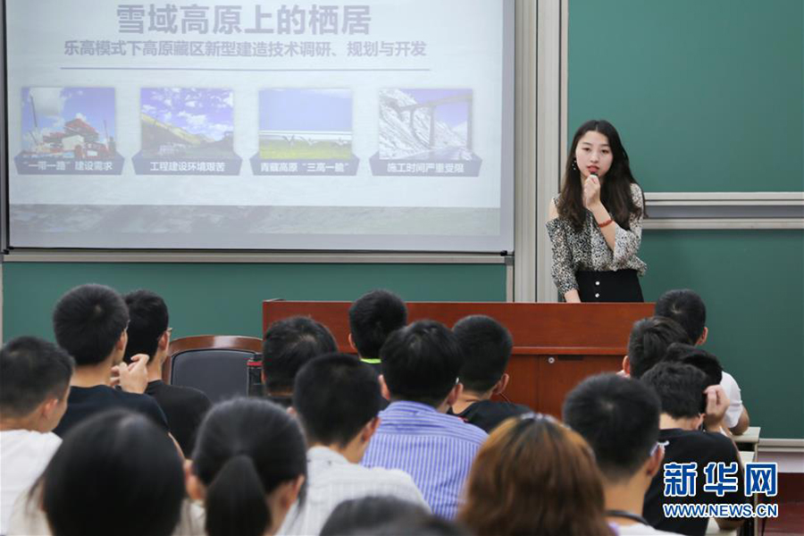 1/0在上海交通大學(xué)舉行的“青春告白祖國(guó)”系列宣講會(huì)上,船舶海洋與建筑工程學(xué)院研究生李凱薇在進(jìn)行演講(9月9日攝)。(新華社發(fā))