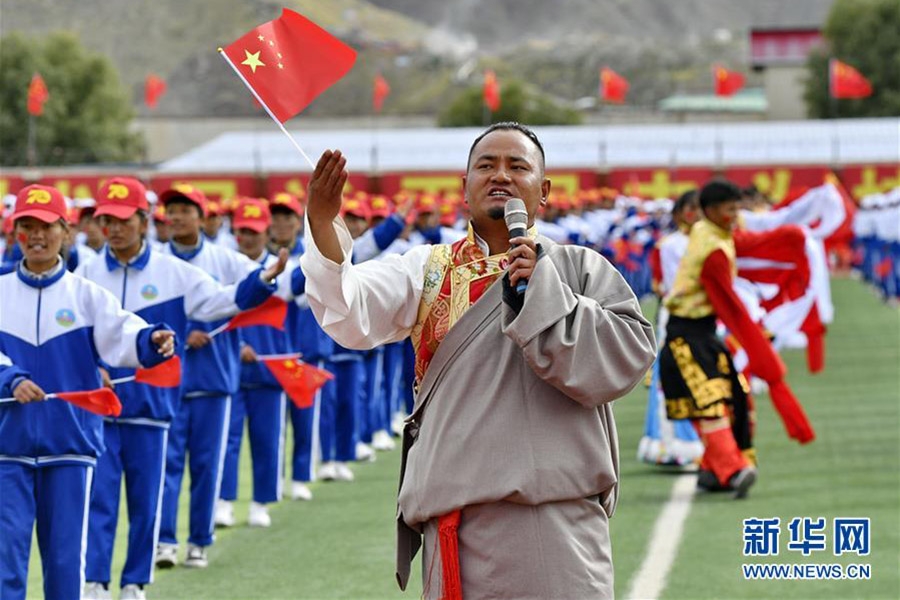 1/09月24日,安徽省合肥師范附小三小的學(xué)生在表演徽劇。當(dāng)日,“頌家鄉(xiāng)美麗、贊祖國強(qiáng)大”長三角地區(qū)學(xué)校少年宮優(yōu)秀文藝節(jié)目匯演在上海大寧劇院舉行。(新華社記者 劉穎/攝)