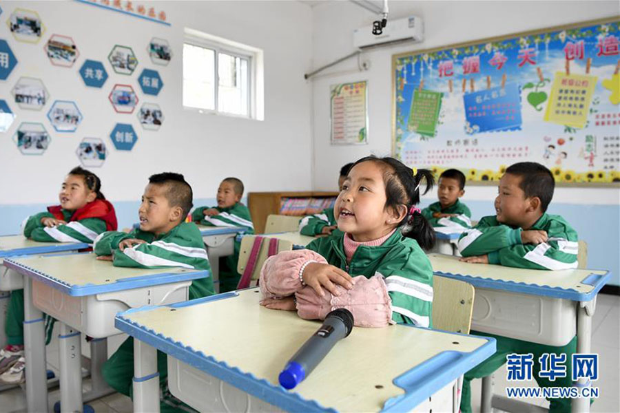 1/010月9日,寧夏固原市涇源縣涇河源鎮(zhèn)高峰村教學(xué)點(diǎn)低年級(jí)學(xué)生在課堂上與涇河源鎮(zhèn)白面民族小學(xué)的師生進(jìn)行網(wǎng)絡(luò)互動(dòng)。(新華社記者 馮開華/攝)