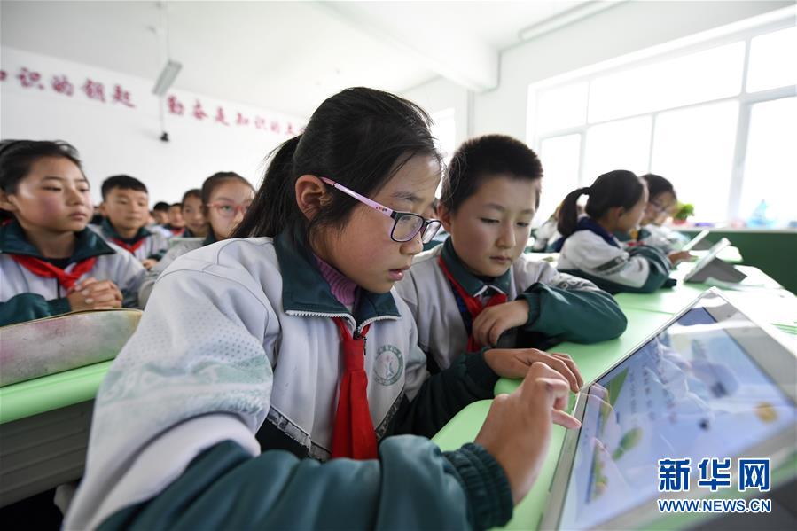 1/010月9日,寧夏固原市涇源縣第四小學(xué)的學(xué)生在課堂上使用平板電腦。(新華社記者 馮開華/攝)