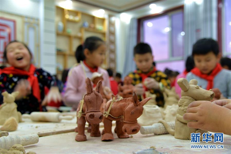 1/012月16日,清水河縣城關(guān)鎮(zhèn)第一小學(xué)學(xué)生在制作陶器。(新華社記者 徐欽/攝)