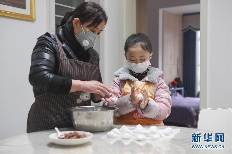 1/02月6日,重慶市云陽縣海峽小學(xué)一年級(jí)學(xué)生周彥希在家人的指導(dǎo)下學(xué)習(xí)包湯圓。(新華社記者 王全超/攝)