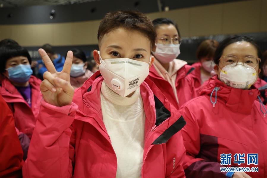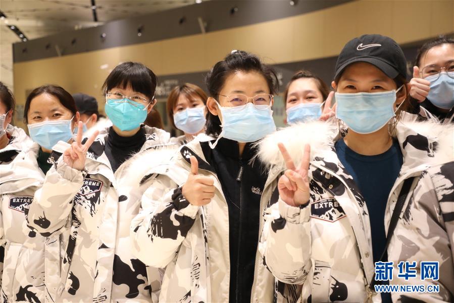 1/02月13日,在哈爾濱太平國際機場,醫(yī)療隊員在出發(fā)前合影。 當日,黑龍江省第四批醫(yī)療隊從哈爾濱太平國際機場出發(fā)馳援湖北。本次醫(yī)療隊成員由哈爾濱醫(yī)科大學附屬第一醫(yī)院、附屬第二醫(yī)院分別派出。(新華社記者 齊泓鑫/攝)