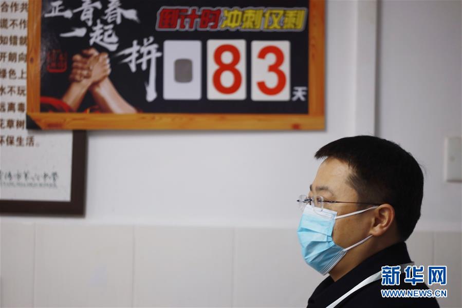 1/03月16日,貴陽市第六中學(xué)一名高三任課老師在高考倒計(jì)時(shí)83天的指示牌前。(新華社記者 歐東衢/攝)