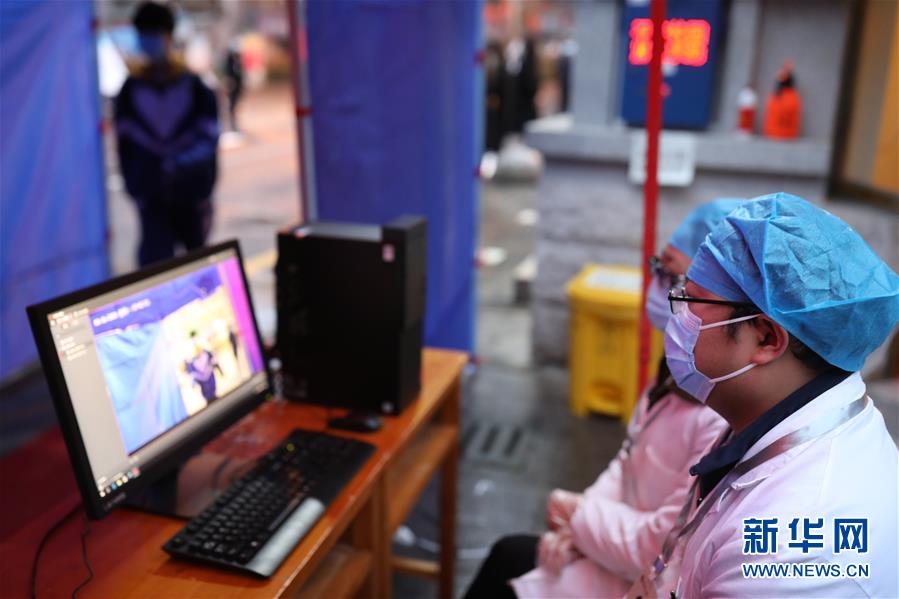 1/03月16日,貴陽市第六中學(xué)高三學(xué)生在進(jìn)入校園時(shí)通過體溫監(jiān)測(cè)點(diǎn)。(新華社記者 歐東衢/攝)