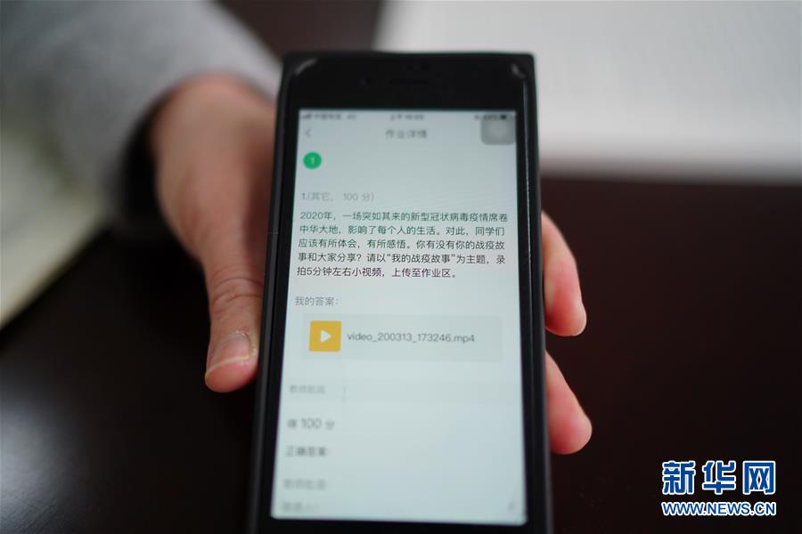 1/0這是手機展示的南昌航空大學線上思政課的作業(yè)(3月17日攝)。(新華社記者 周密/攝)