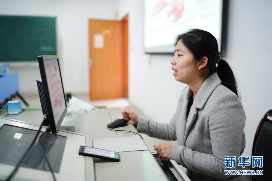 1/03月17日,南昌航空大學思政課教師盧艷蘭通過網(wǎng)絡給學生們上課。近期,江西省委教育工委、省教育廳在全省高校間舉辦戰(zhàn)“疫”思政課堂教學比賽,將抗擊疫情的鮮活素材與思政教育、互聯(lián)網(wǎng)傳播結合,給學生們上了一堂生動的思政課。(新華社記者 周密/攝)