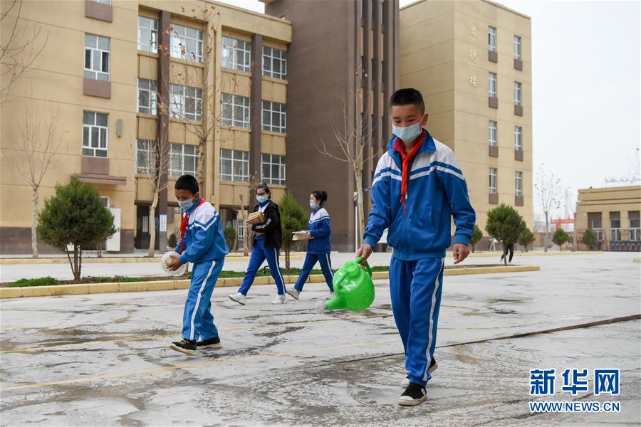 1/03月23日,在新疆喀什市東城第八初級(jí)中學(xué),學(xué)生在打掃衛(wèi)生。(新華社記者 丁磊/攝)