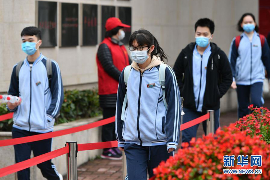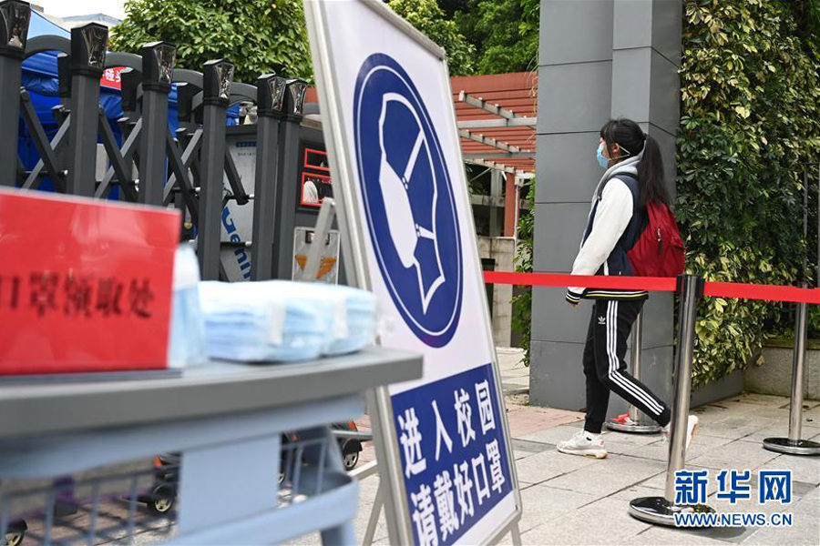 1/04月7日,福州屏東中學(xué)的高三年級學(xué)生保持間距,有序進(jìn)入校園。(新華社記者 魏培全/攝)