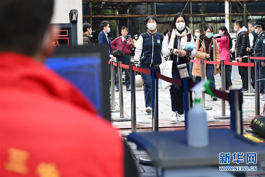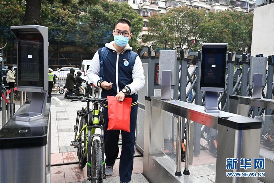 1/04月7日,福州屏東中學(xué)高三年級學(xué)生有序進(jìn)入校園大門。 當(dāng)日,福建省高三年級學(xué)生開學(xué)復(fù)課。(新華社記者 魏培全/攝)