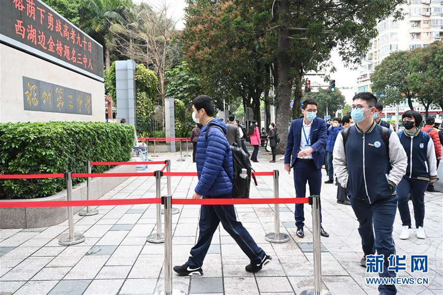 1/04月7日,福州第三中學(xué)的高三年級學(xué)生進(jìn)校上課。(新華社記者 林善傳/攝)
