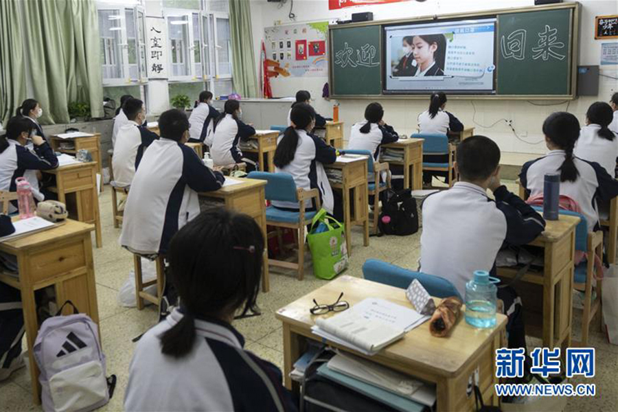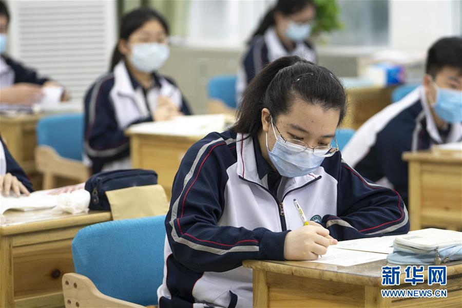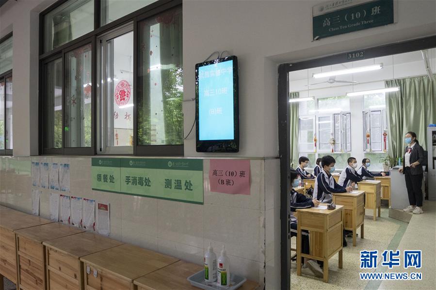 1/05月6日,湖北省武昌實(shí)驗(yàn)中學(xué)的高三年級(jí)學(xué)生走進(jìn)校園。 當(dāng)日,武漢首批121所學(xué)校高三年級(jí)正式復(fù)學(xué),學(xué)生返校上課。據(jù)了解,開(kāi)學(xué)前,所有校園均開(kāi)展了衛(wèi)生清潔和預(yù)防性消殺工作,所有學(xué)生返校前須進(jìn)行健康檢測(cè)。(新華社記者 熊琦/攝)