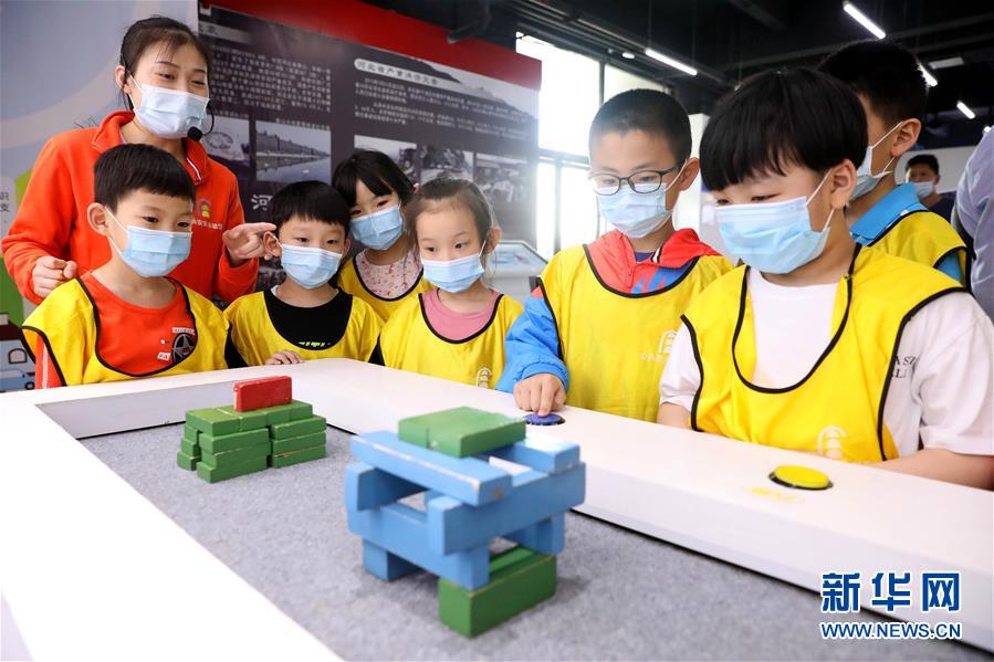 1/05月11日,在石家莊公共安全體驗(yàn)館,小朋友通過演示裝置了解各震級(jí)對(duì)不同建筑類型的破壞力。(新華社發(fā) 梁子棟/攝)