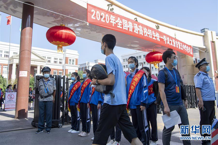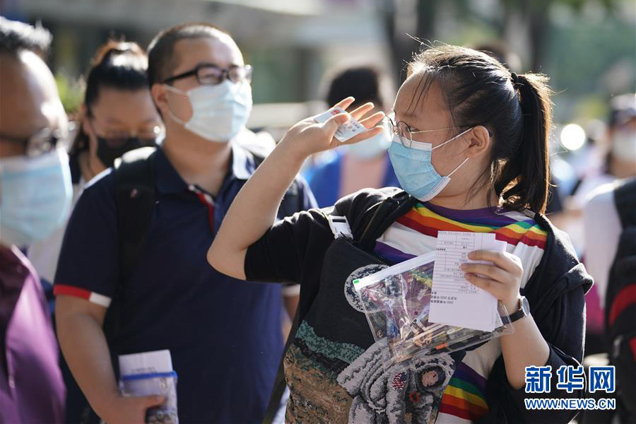 1/07月7日,考生有序進入吉林省長春市的東北師范大學附屬中學考點。 當日,2020年高考拉開帷幕。(新華社記者 許暢/攝)