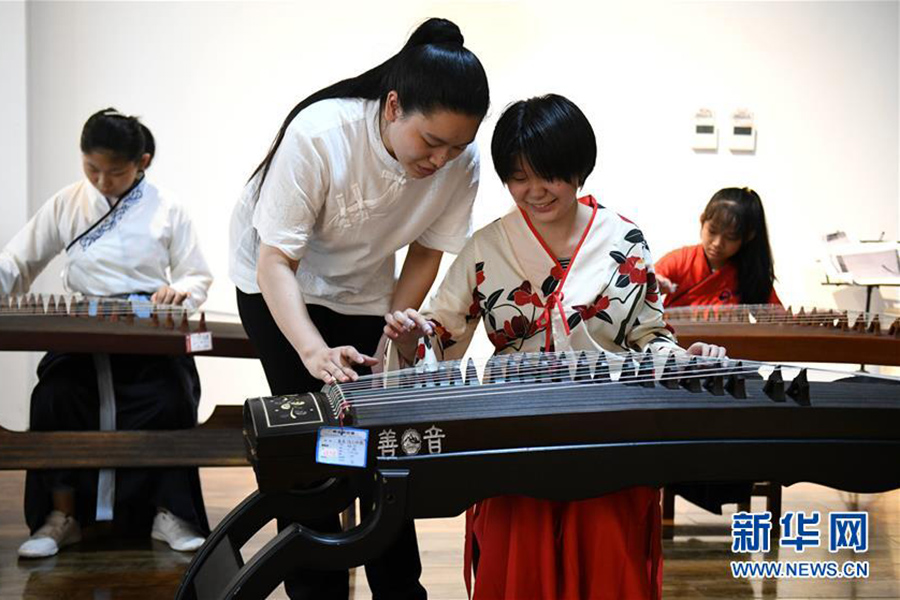 1/08月10日,專業(yè)老師在輔導(dǎo)孩子們學(xué)習(xí)古箏。(新華社發(fā) 許建園/攝)