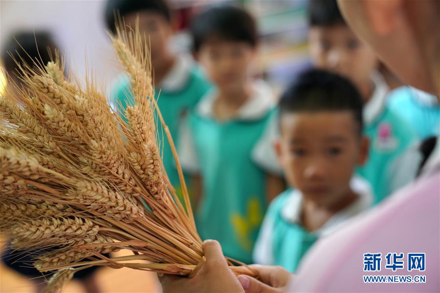 1/09月1日,河北省邢臺市襄都區(qū)第二幼兒園的老師為孩子們講解農(nóng)作物知識。 開學(xué)伊始,不少學(xué)校、幼兒園開展“節(jié)約糧食 杜絕浪費(fèi)”為主題的開學(xué)第一課,幫助孩子們認(rèn)識糧食的重要性,從小樹立愛糧、惜糧、節(jié)糧的意識。(新華社記者 牟宇/攝)