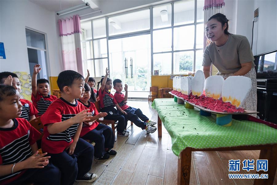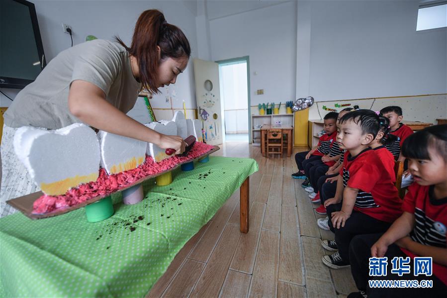 1/09月16日,老師利用模型給孩子講解牙齒、牙齦的結(jié)構(gòu)及正確的刷牙方式。(新華社記者 徐昱/攝)