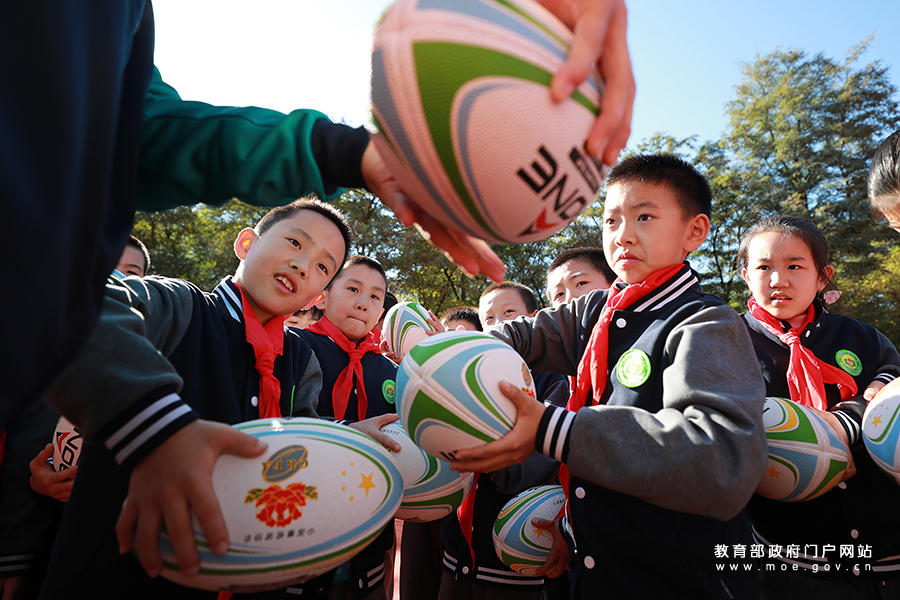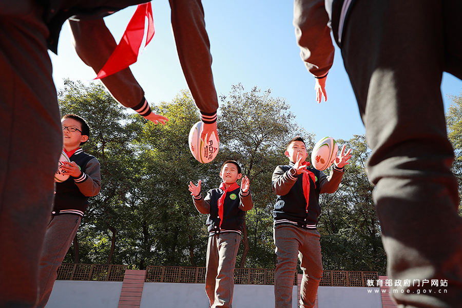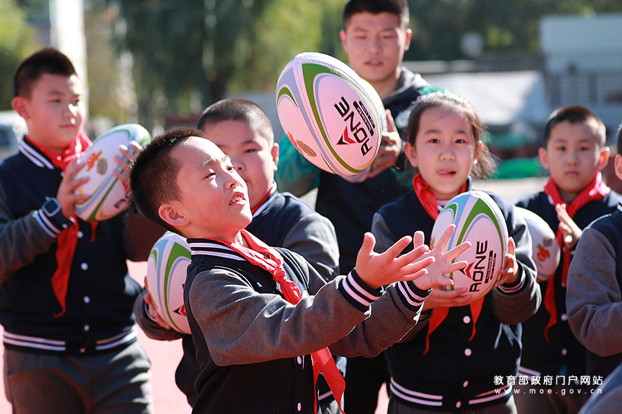 1/010月16日,沈陽農(nóng)業(yè)大學(xué)附屬小學(xué)學(xué)生在沈農(nóng)橄欖球隊(duì)隊(duì)員的輔導(dǎo)下,進(jìn)行橄欖球基礎(chǔ)訓(xùn)練。近年來,沈陽農(nóng)業(yè)大學(xué)附屬小學(xué)依托大學(xué)資源,開設(shè)橄欖球特色體育課程,讓學(xué)生在享受運(yùn)動(dòng)樂趣的同時(shí),增強(qiáng)身體素質(zhì),錘煉意志品質(zhì)。(張宜軍 張學(xué)軍/攝)