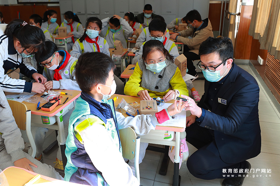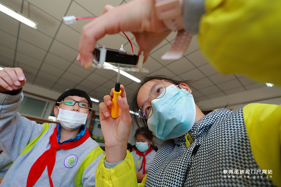課堂上,學(xué)生正在共同組裝紅外夜燈。(朱厚穎、張學(xué)軍/攝)