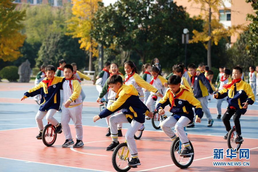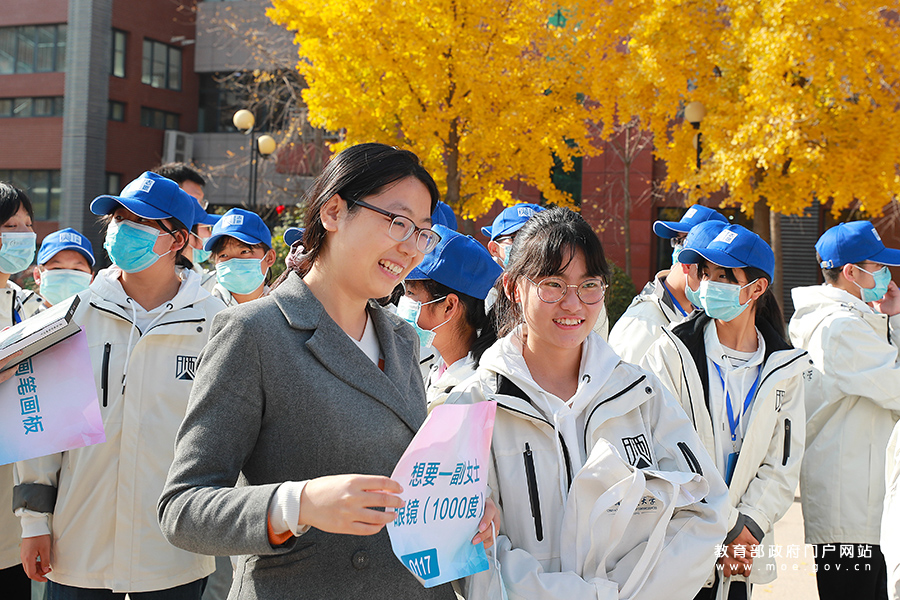 11月13日,中國地質(zhì)大學(北京)的師生與青海省化隆縣學生合影留念。(雷鳴 張學軍/攝)