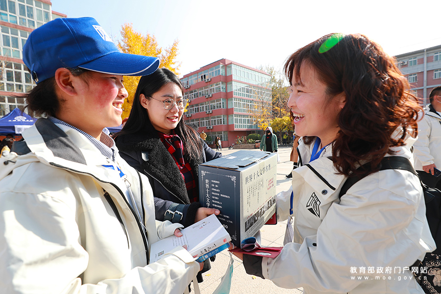 11月13日,中國地質(zhì)大學(北京)經(jīng)管學院二支部的黨員,代表黨支部向化隆學生捐贈一套《世界十大文學名著》。(雷鳴 張學軍/攝)