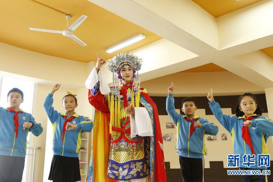 1/011月19日,在河北省邢臺(tái)市家樂(lè)園小學(xué),戲曲教師指導(dǎo)孩子們練習(xí)戲曲。河北省邢臺(tái)市家樂(lè)園小學(xué)將傳統(tǒng)戲曲引進(jìn)校園,通過(guò)戲曲學(xué)習(xí)、戲曲文化交流等形式,讓學(xué)生感受傳統(tǒng)文化的魅力。(新華社發(fā) 張馳/攝)