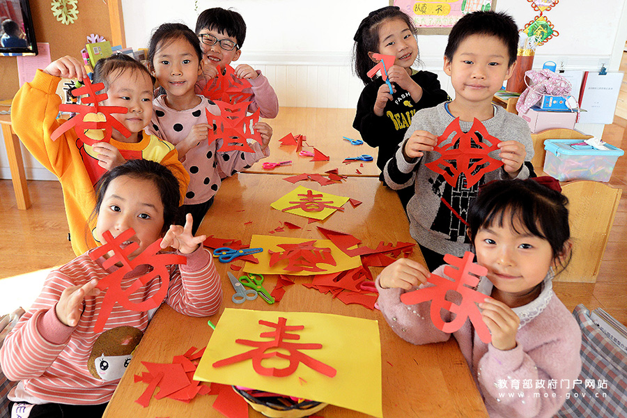 12月29日,河北張家口市宣化區(qū)勝利路幼兒園布置一新,大紅的燈籠,漂亮的窗花,閃爍的彩燈,滿眼“中國紅”。孩子們在老師的指導下剪窗花、包餃子、扭秧歌,感受中國傳統(tǒng)文化,喜迎新年。(宋強、孫明鵬/攝)