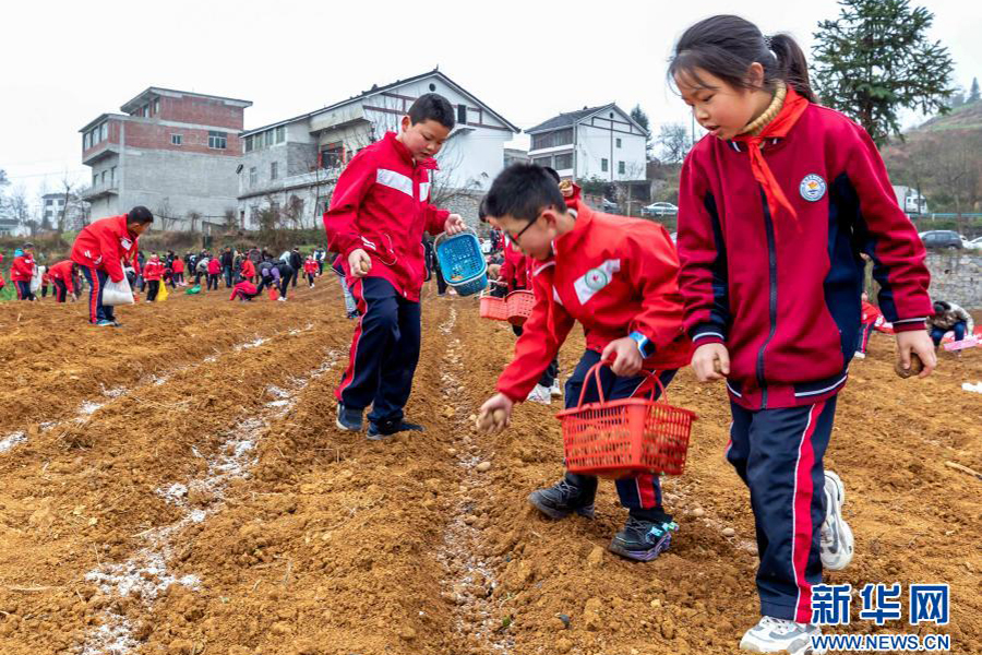 1/02月28日,畢節(jié)市黔西縣第一小學(xué)老師在布置栽種土豆任務(wù)。(新華社發(fā) 范暉/攝)