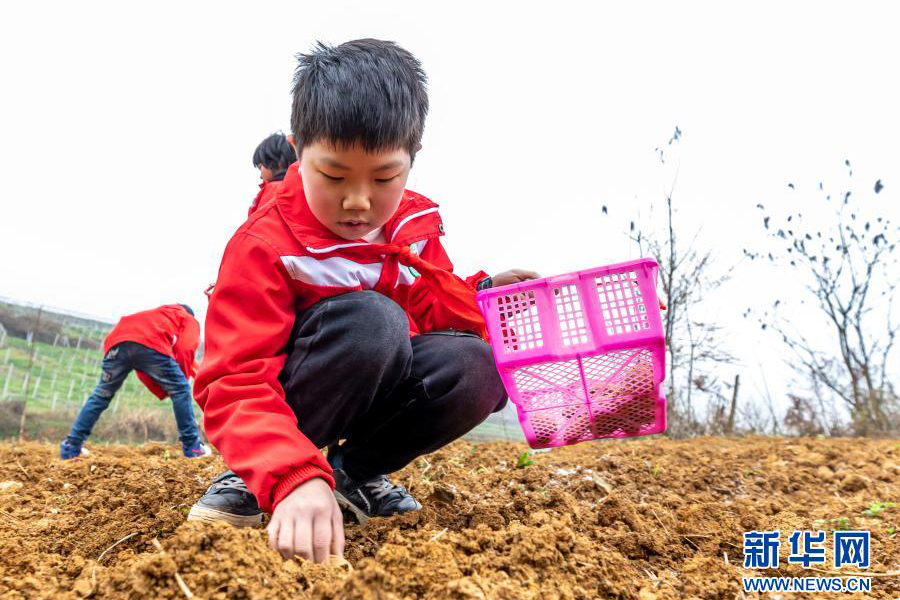 1/02月28日,畢節(jié)市黔西縣第一小學(xué)學(xué)生在學(xué)習(xí)下種。(新華社發(fā) 范暉/攝)