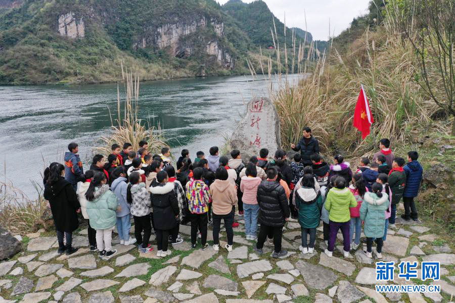1/02月28日,學(xué)生們在聽紅軍突破烏江的故事。(新華社記者 劉續(xù)/攝)