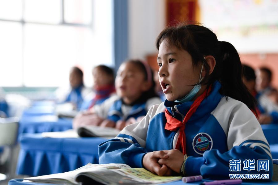 1/03月17日,在果洛藏族自治州甘德縣下貢麻鄉(xiāng)寄宿制中心小學(xué),學(xué)生在上課。(新華社記者 張龍/攝)