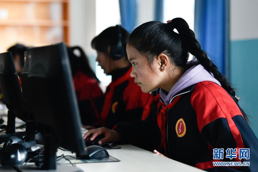 1/03月17日,在果洛藏族自治州甘德縣崗龍鄉(xiāng)寄宿制中心小學(xué),學(xué)生在上計算機(jī)課。(新華社記者 張龍/攝)