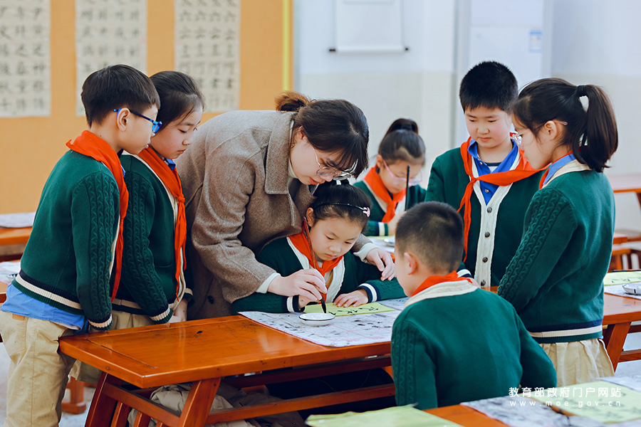 1/04月12日,在邢臺市隆堯縣第三實驗小學(xué)京劇課堂,戲曲老師指導(dǎo)學(xué)生練習(xí)京劇表演基本功。近年來,河北省邢臺市隆堯縣積極打造“一校一品”特色校園,將京劇融入學(xué)校文化建設(shè)中,通過京劇名家進課堂、京劇展演、京劇社團交流等活動形式,讓學(xué)生近距離感受傳統(tǒng)文化的魅力。(新華社記者 駱學(xué)峰/攝)