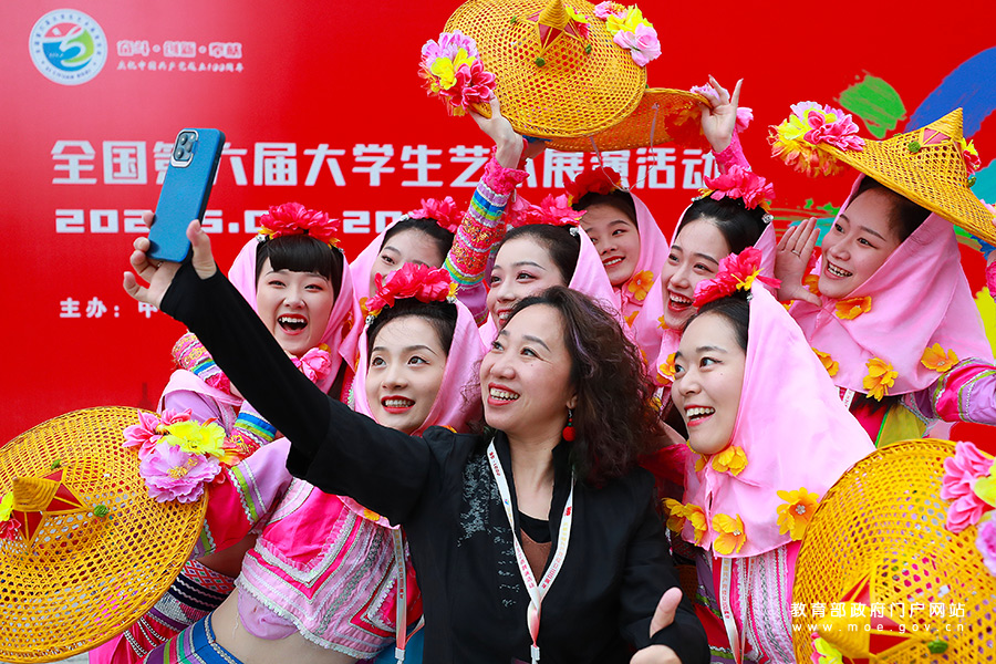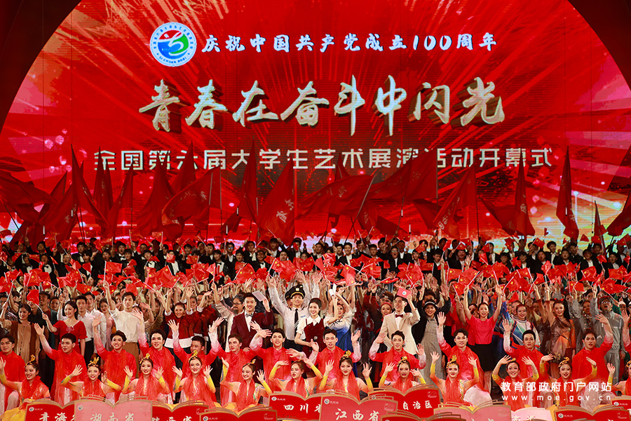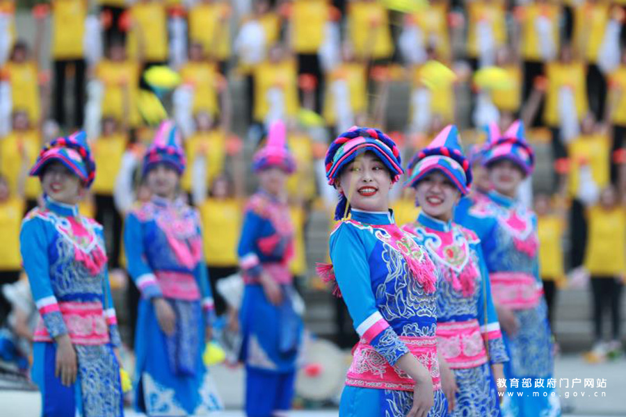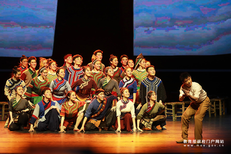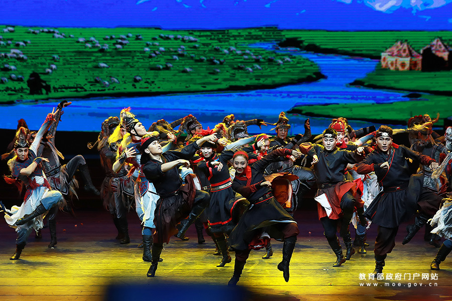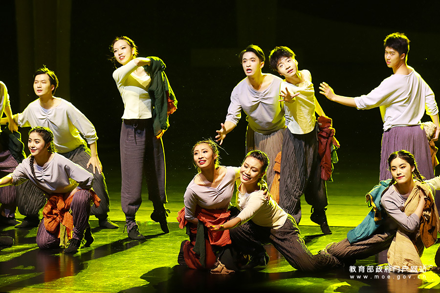 1/05月6日,在大學生藝術(shù)展演活動現(xiàn)場,同學們正在表演民族舞蹈。當日,全國第六屆大學生藝術(shù)展演活動在成都開幕。“頌歌獻給黨、奮進新時代”,本屆展演將突出展示當代大學生與中國共產(chǎn)黨同行、與祖國同行、與人民同行、與時代同行、與夢想同行的理想信念和青春風采,以莊重的儀式感、熱烈的喜慶感,慶祝中國共產(chǎn)黨成立100周年。近年來,我國著力推進美育教學改革,以培養(yǎng)學生的審美和人文素養(yǎng)為目標,通過“教會、勤練、常展、常演”,充分調(diào)動“師、生、家、校、社”五大主體,培養(yǎng)學生基本的藝術(shù)知識、技能和專項藝術(shù)特長,給學生欣賞、體驗美的機會,培養(yǎng)他們創(chuàng)造美的能力。(張學軍/攝 曹建/文)