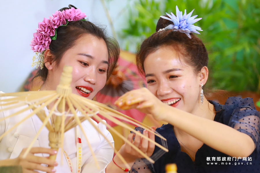 1/0南京鐵道職業(yè)技術(shù)學(xué)院的同學(xué)們跟隨國家級(jí)非遺傳承人學(xué)習(xí)燈彩扎制技藝。5月6日,全國第六屆大學(xué)生藝術(shù)展演活動(dòng)在成都開幕。本屆展演設(shè)立了大學(xué)生藝術(shù)實(shí)踐工作坊展示和優(yōu)秀藝術(shù)作品展覽,將呈現(xiàn)來自全國各大高校的43個(gè)藝術(shù)實(shí)踐工作坊和253幅學(xué)生、高校校長的藝術(shù)作品。本屆展出的作品具有地域特征、民族特色和教育特點(diǎn),傳達(dá)了青年學(xué)子對(duì)中華優(yōu)秀傳統(tǒng)文化的深厚感情,展現(xiàn)了高校美育培養(yǎng)創(chuàng)新意識(shí)、激發(fā)創(chuàng)造活力和服務(wù)經(jīng)濟(jì)社會(huì)發(fā)展的生動(dòng)實(shí)踐。(張學(xué)軍/攝 李佩/文)