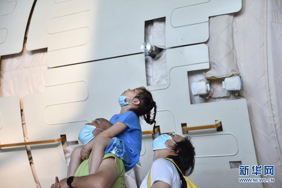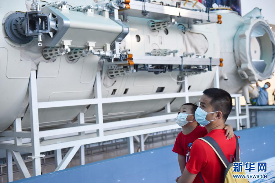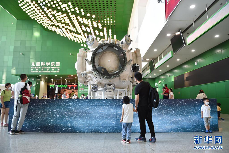 6月19日,不少家長(zhǎng)帶著孩子來(lái)到位于北京市朝陽(yáng)區(qū)的中國(guó)科學(xué)技術(shù)館,參觀“天和核心艙”結(jié)構(gòu)驗(yàn)證件實(shí)物,了解中國(guó)空間站相關(guān)知識(shí)。(新華社記者 陳鐘昊/攝)