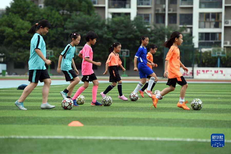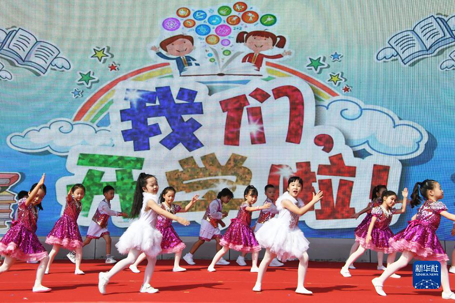 1/09月1日,在北京市海淀區(qū)太平路小學(xué),學(xué)生在開學(xué)典禮中表演節(jié)目。(新華社記者 任超/攝)