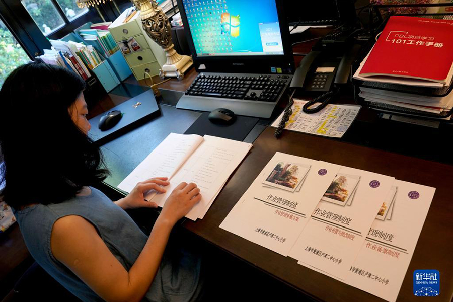 1/0這是9月1日在上海市黃浦區(qū)盧灣二中心小學(xué)教師辦公室內(nèi)拍攝的新學(xué)期作業(yè)管理要求和制度。這是學(xué)校根據(jù)“雙減”政策及相關(guān)規(guī)定重新修訂的,要求老師嚴(yán)格執(zhí)行。(新華社記者 劉穎/攝)