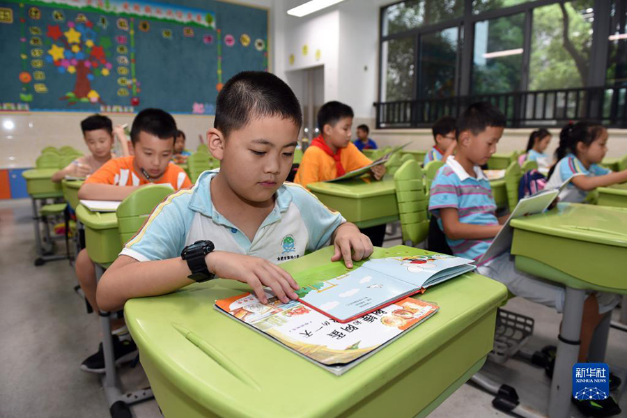 1/09月2日,在合肥市望湖小學(xué)洞庭湖路校區(qū),學(xué)生們在課后服務(wù)托管班里閱讀。(新華社記者 周牧/攝)