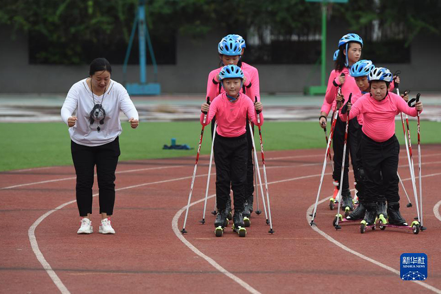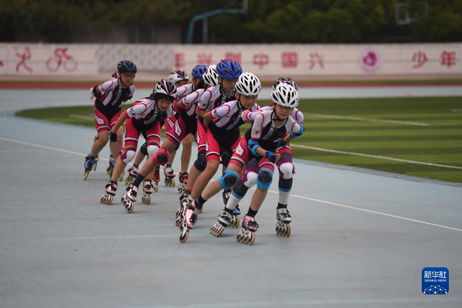 1/09月2日,在合肥市師范附屬第三小學(xué),輪滑社團(tuán)的同學(xué)們在訓(xùn)練。(新華社記者 周牧/攝)