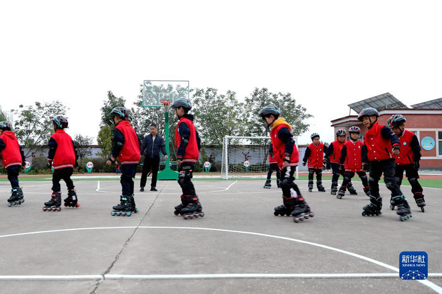 1/010月8日,河北省邢臺(tái)市任澤區(qū)達(dá)二小學(xué)學(xué)生在練習(xí)輪滑。(新華社記者 駱學(xué)峰/攝)