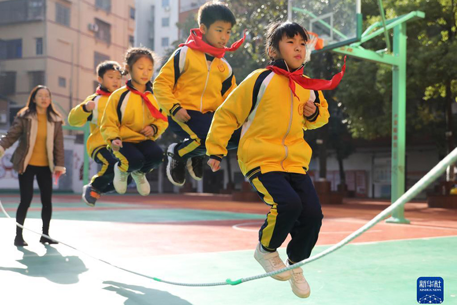 1/011月10日,衡陽(yáng)市雁峰區(qū)環(huán)城南路小學(xué)的同學(xué)在跳繩。(新華社發(fā) 周仲輝/攝)