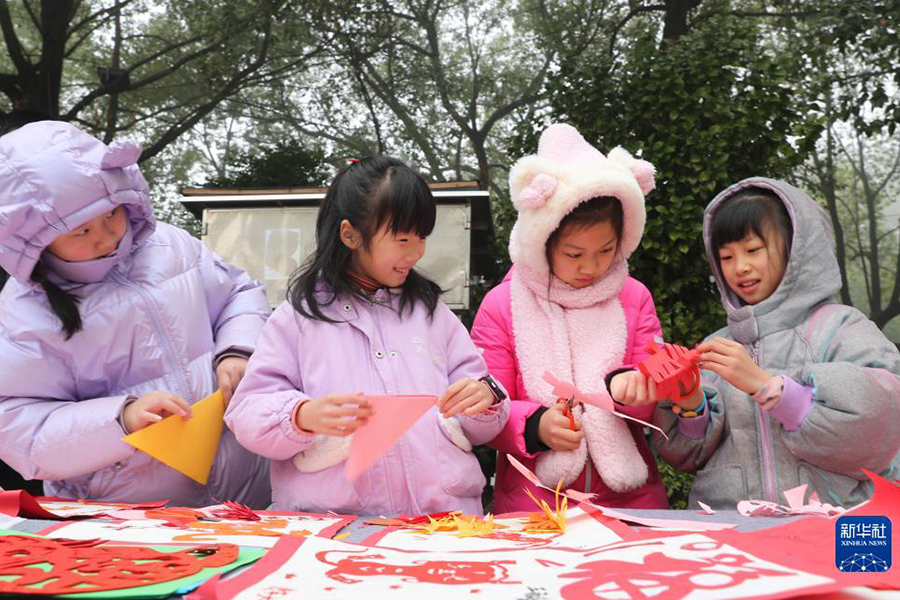 1/01月19日,在江蘇省揚州市春江社區(qū),非遺傳承人指導孩子們學習剪紙。寒假期間,各地學生參加多彩文體活動,增長知識、強健體魄,樂享假期生活。(新華社發(fā) 孟德龍/攝)