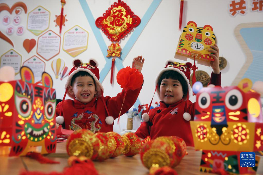 1/01月19日,在湖南省衡陽市衡東縣洣水鎮(zhèn),小朋友練習剪紙。(新華社發(fā) 曹正平/攝)